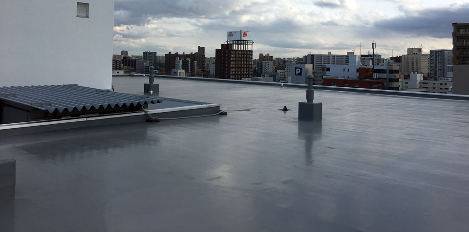 液状の防水材を塗布する工法です。複雑な下地の形状にもなじみやすく水密性の高い連続した被膜が得られます。