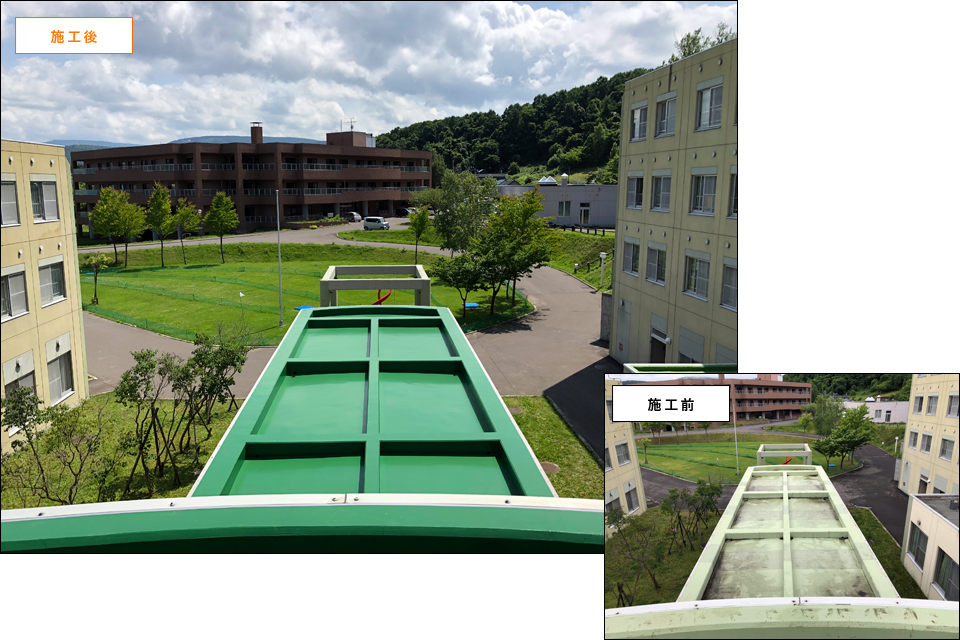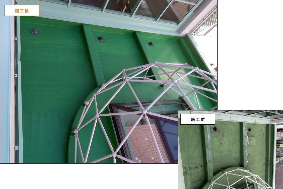 ポリエステル樹脂にガラス繊維を組み合わせて塗布する工法です。