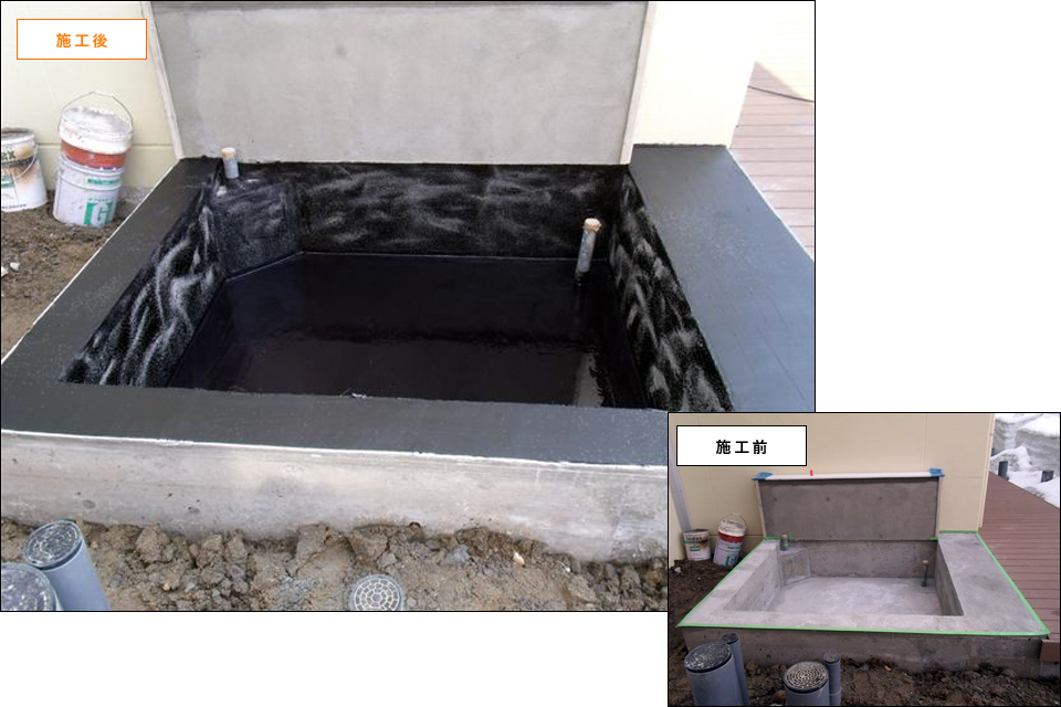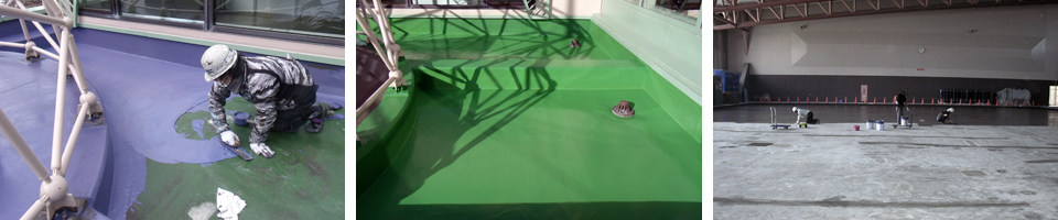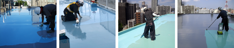 常温で液状のものを混合撹拌して塗り広げ、硬化させて防水被膜を形成する工法です。