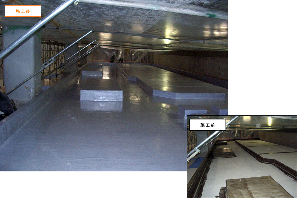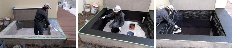 下地に塗り重ねて塗布する工法です。火気を使用せず施工することができ、湿潤な状態でも施工ができます。