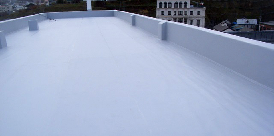 塩ビシート防水とは縮性のある塩化ビニール樹脂系のシートを接着剤で貼り付ける密着工法と、