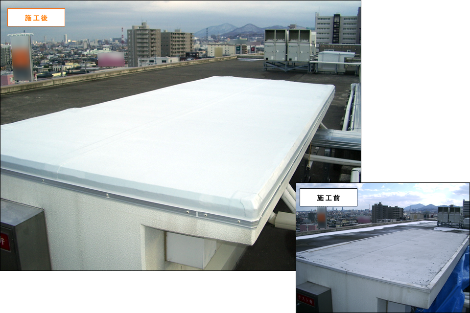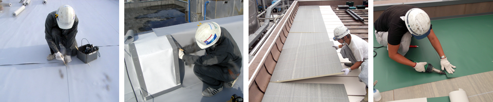 塩ビ樹脂や加硫ゴムを主成分としたシートを貼り付ける工法です。